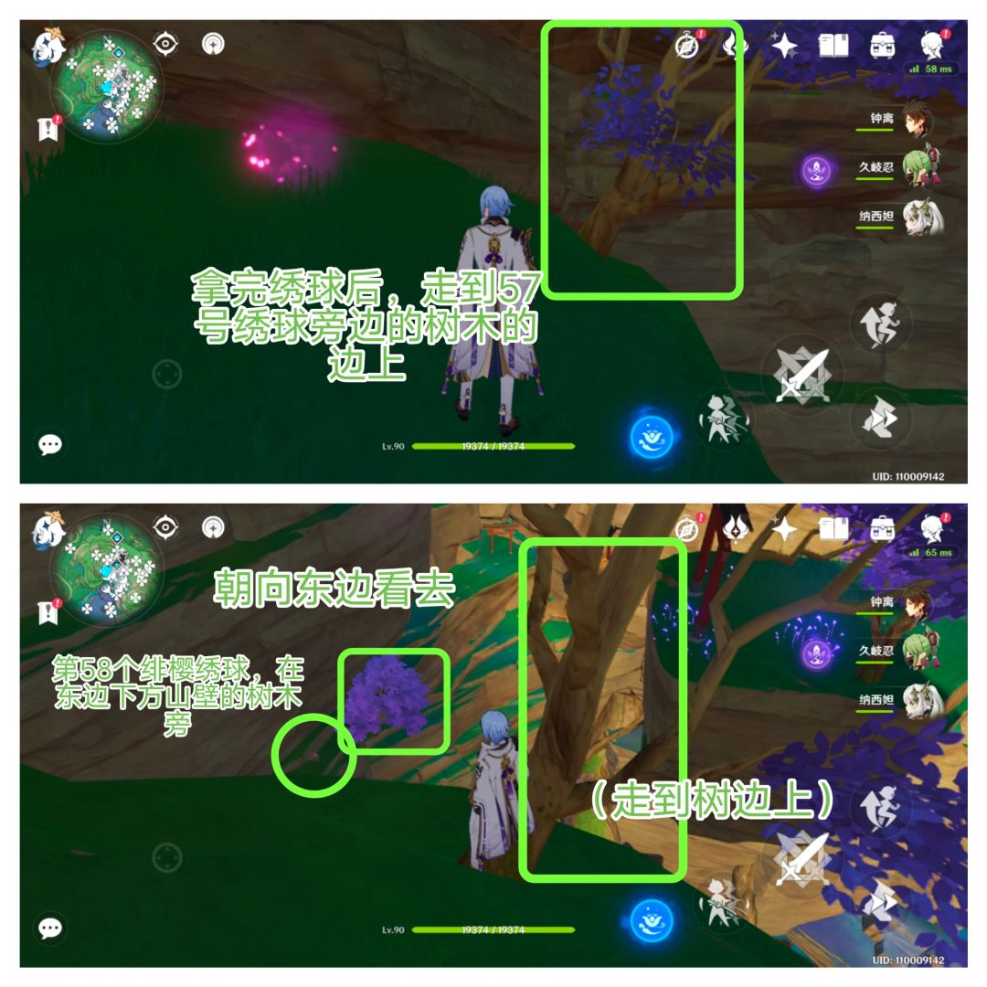 (第59-63个绯樱绣球没那么难找,直接根据我前面图中的标记去地面上寻找即可)