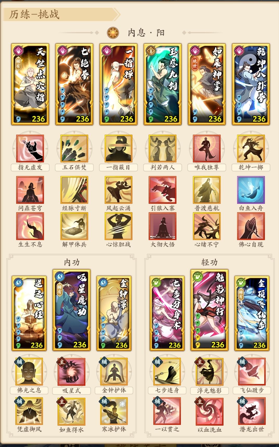 1.改版以后有部分塔通过传统吸内手段是几乎不可能过去的(除非战力碾压),包括木人主运韦家步法,主运神行留香,主辅运飞鱼身法,主辅运翻腾术等。对于这些塔我们要准备一套非吸内的套路进行通关
