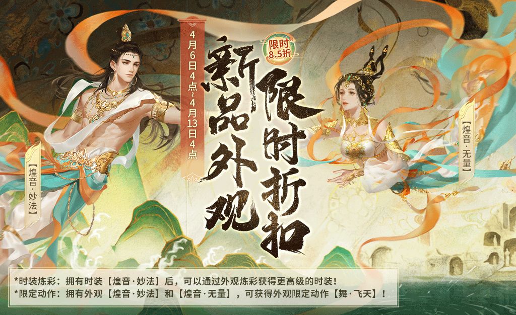 少侠拥有外观【煌音·妙法】和【煌音·无量】,可免费拥有外观限定动作【舞·飞天】。