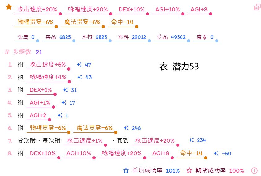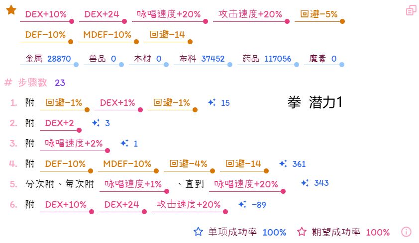 ※已做过简化,尤其是在消耗素材量方面