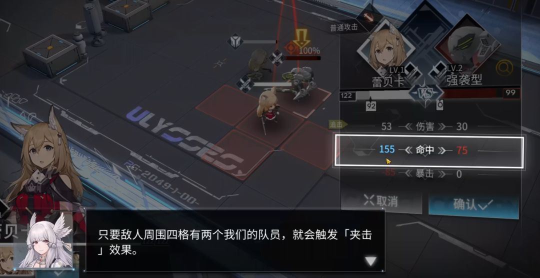 接着突击职业就有点类似于近战刺客。其不仅有较强的近战输出能力,同时考虑到游戏中的“夹击”概念。其逻辑便是在敌方周围4格内已经存在至少2位我方角色时,我方再对其进行输出,便能获得夹击的攻击加成。提升我方角色的命中率,并且降低敌方的命中率。而当突击角色攻击被夹击的敌人时,其攻击属性和速度属性还会得到至少20%的提升。所以这个有点类似于围攻的概念也是极为重要的一项进攻战术,不仅可以提高我方的输出能力,亦能提升我方近战角色的生存能力。最后突击角色在晋升后还能获得攻击后,可以利用剩余移动力再次移动的作战效果。