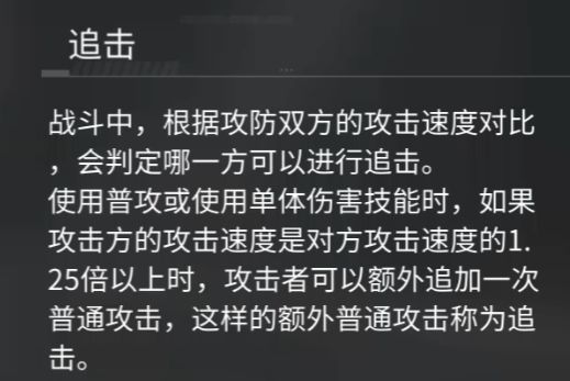 第4点是:当我方角色的速度超过敌方1.25倍以上时,在我方使用普攻或单体输出技能时,便能额外追加一次普通攻击,所以速度在实战当中的作用还是非常之大的,不过反过来如果敌方的速度超过了我方的1.25倍以上,敌方在反击或攻击的时候亦会触发追击效果,所以想要更好的打出单体输出来,想办法提升我方角色的速度属性也是一个不错的策略。