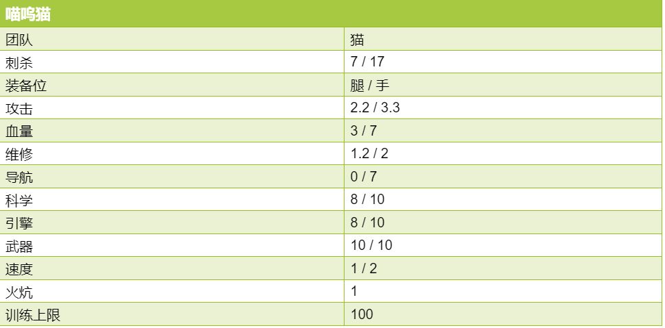 刺杀猫里优秀的面板,不过能力腿不太好找,如果你拥有一个高能力的护腿,他当然是不二之选。