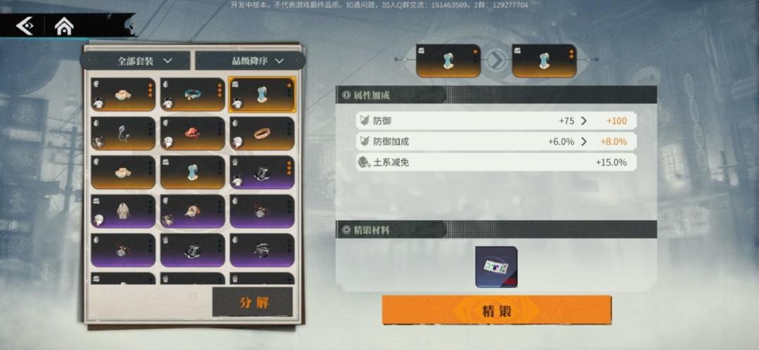 装备可以强化(精锻)三次,每次精锻都可以给它的三条属性提高。