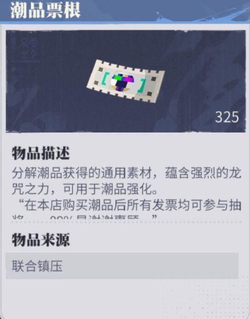 可以给装备(潮品)强化的唯一素材,分解潮品可以获得。
