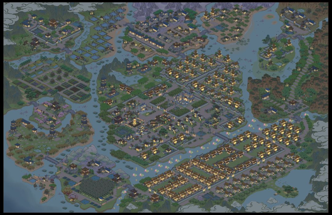 终于建造完成,太喜欢夜景了,灯火通明,安静祥和美好。最喜欢浮烟谷和幽云涧两个岛屿的景色[送花花][送花花][送花花]