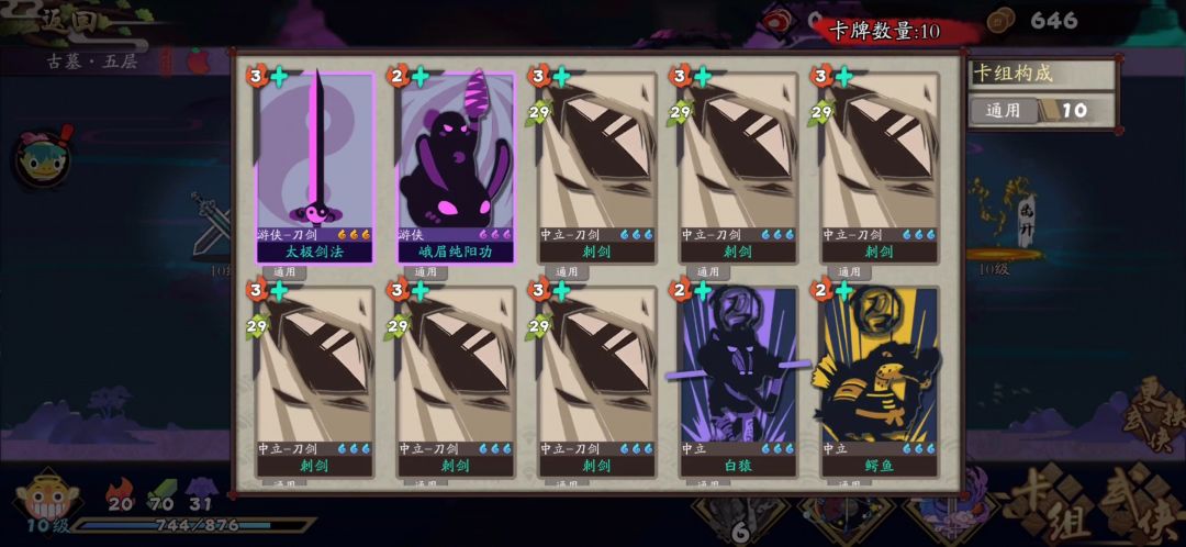 操作简单,卡组极易成型,黄蓉重明橙自带白猿抽牌,连四象清虚都不是必需了,鳄鱼配合黄蓉6层灼伤,萝卜提供冷血+ 抽太极剑,🐮逼就完事儿了。