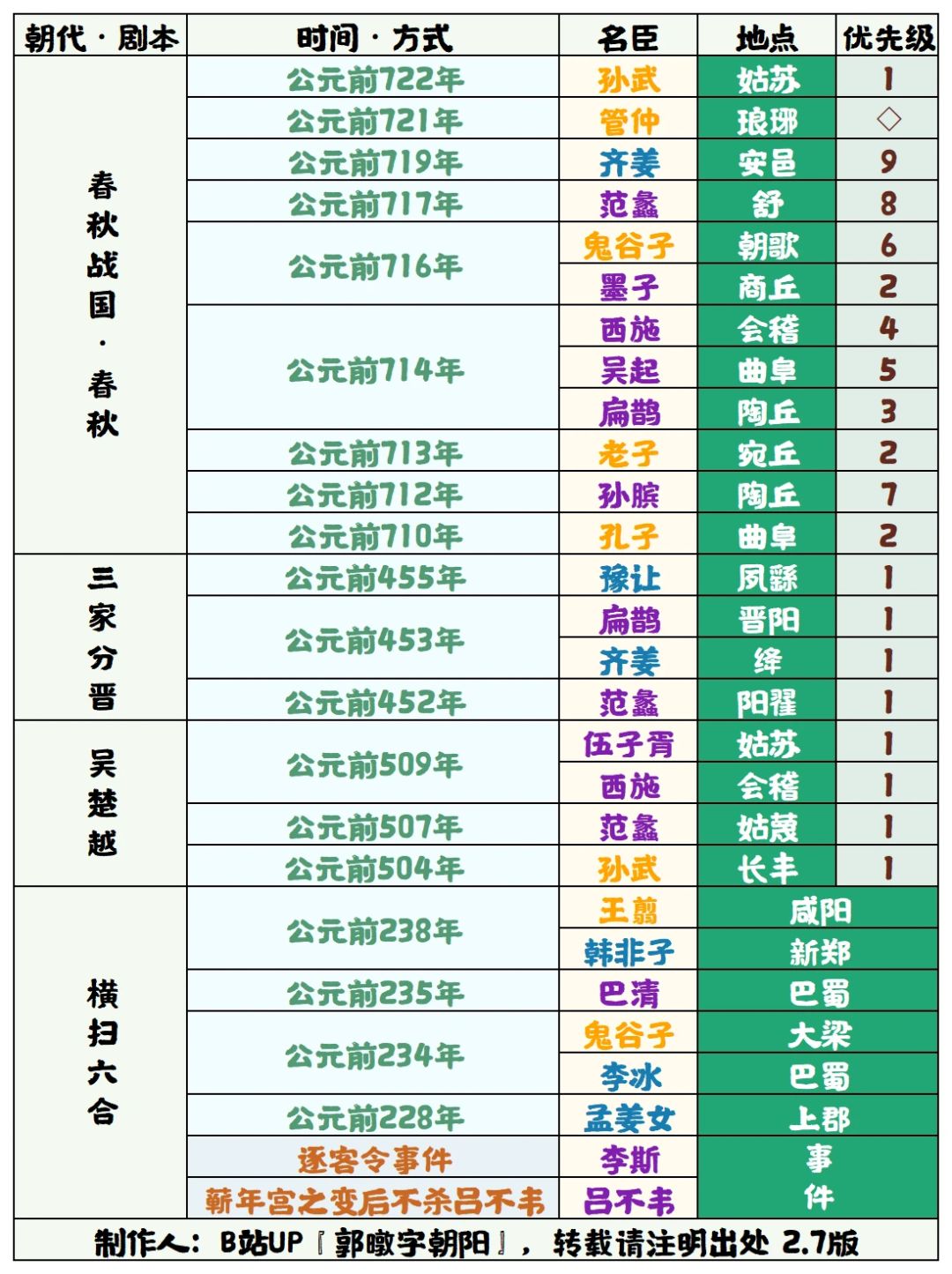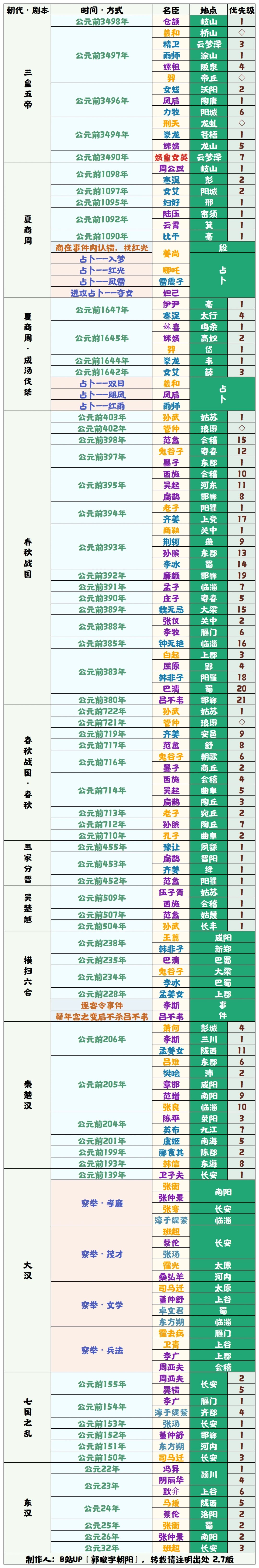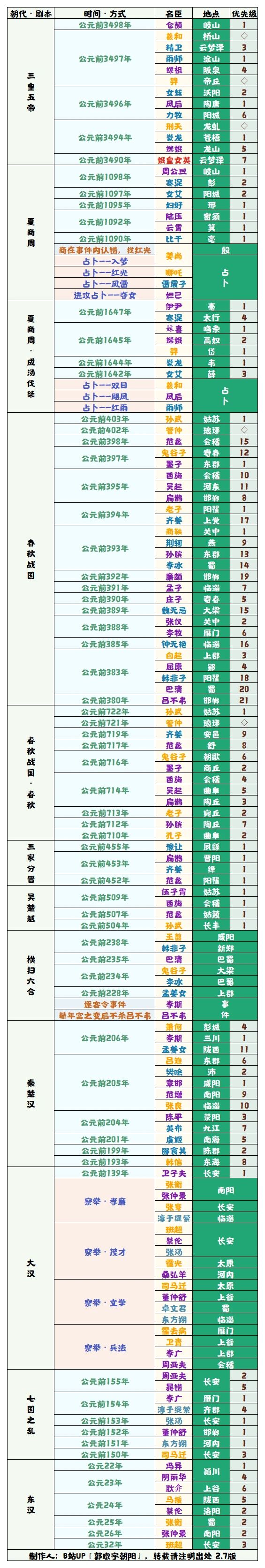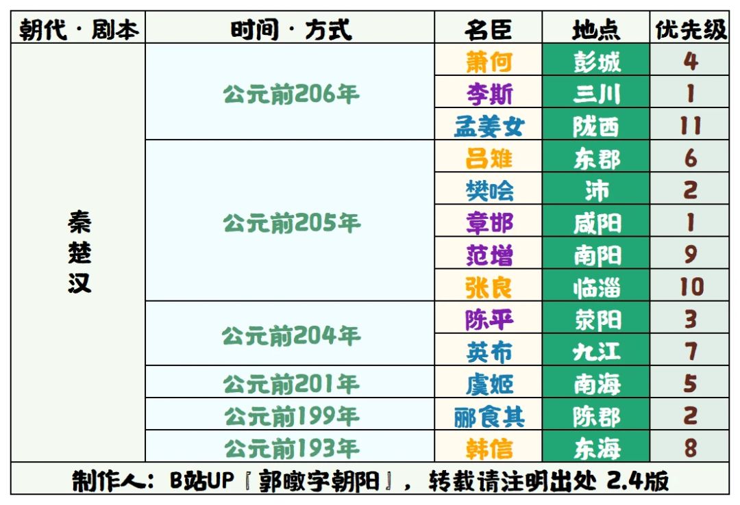优先级是指到最后一个名臣刷新后,名臣出场的固定顺序,优先级数字越小出场越靠前。优先级是指到最后一个名臣出现时,该名臣已不会再出现。