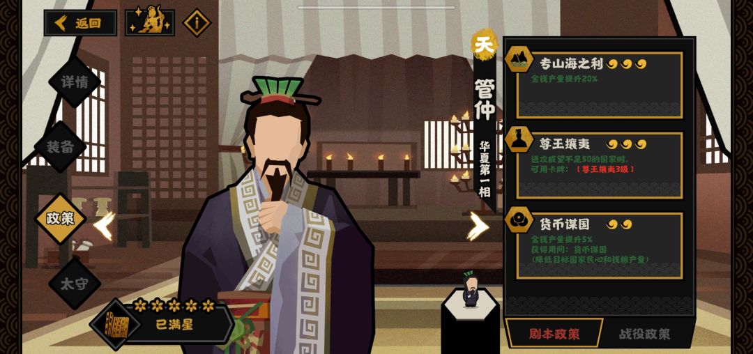 所以这个名臣我不知道应该怎么去加强。如果是单纯加强二政策的数值,那其实没啥意义…