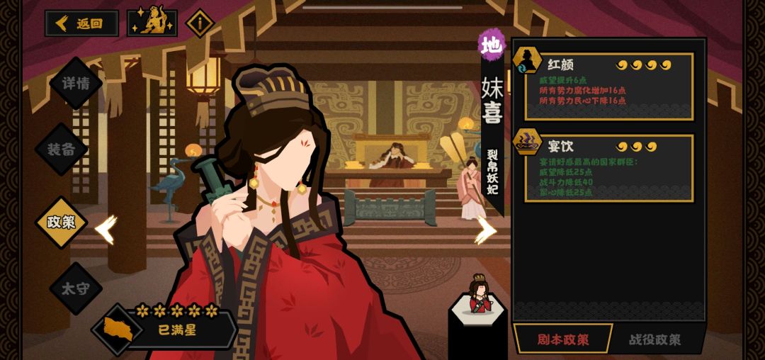 ②妺喜的开会目前应该也是玩家比较讨厌的政策之一了吧。目前玩家主动使用可以用来大汉开局速通匈奴。除此之外就只有被电脑恶心的时候了。