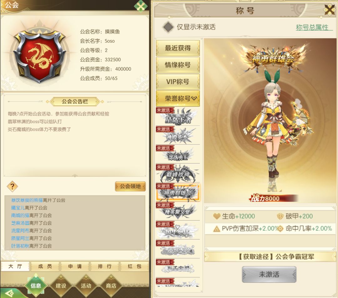 许多炫酷帅气的称号都可以通过公会活动解锁。