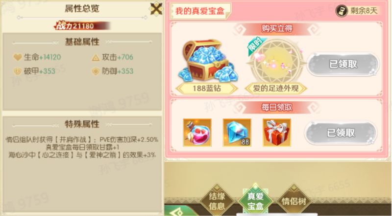 通过完成日常和浇灌情侣树,更是可以日积月累的提升战力。