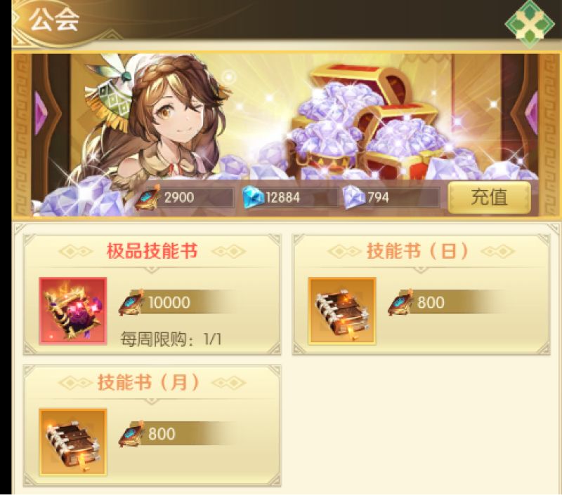 在获取公会贡献后,还可以在公会商店中换取技能书来突破技能上限。