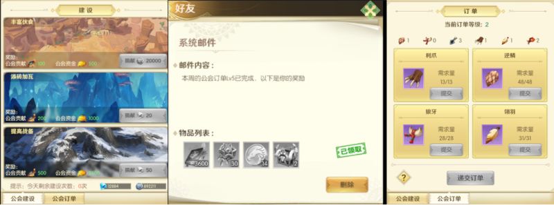 公会每日都有建设和订单任务,完成即可获得奖励。