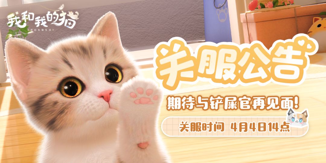 《我和我的猫》甜甜派对测试将于2023年4月4日14:00正式结束,届时将关闭游戏服务器,各位铲屎官将无法登录。