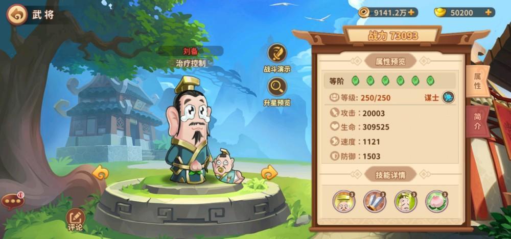 技能解析:大招和普攻都带有一定的控制能力(概率不高),被动技能敌方有武将阵亡可以为我方血量最低的武将回复生命,刘备阵亡此技能依然生效