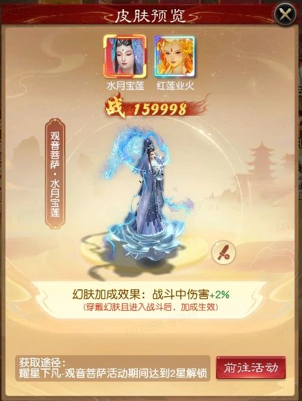 除了超强技能外,“观音菩萨”在技能升星后将获得“新皮肤”!技能星级升至2星后可解锁水月宝莲皮肤,技能星级升至5星后可解锁红莲业火皮肤!幻肤还将拥有战斗加成效果,实力与颜值并存!在升星路上,还将获得“升星赠礼”,更多占星令助力升星之路一路狂飙!