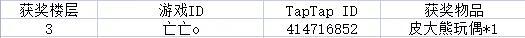 恭喜皮卡亲获得【皮大熊玩偶*1】请皮卡亲在7天内登记收件信息。