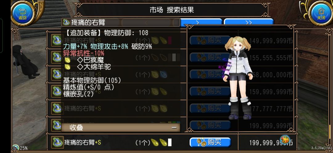 性价比很高8%武攻400蓝4攻回这个价格很不错了(不过现在板子上便宜的都被买了了建议等等,我111w买了个给拳用,这里布料很多捏。)