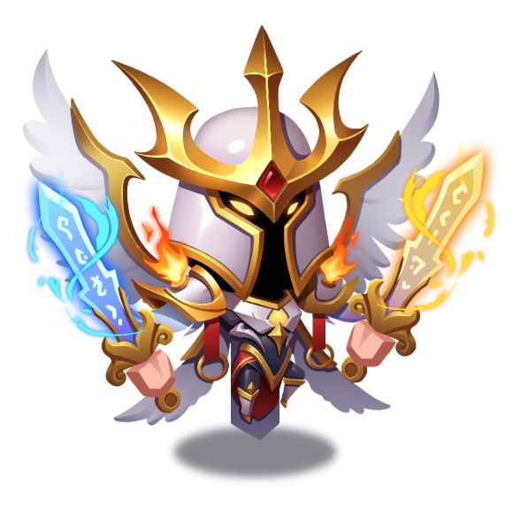 4、日月双剑:昊天使拥有日月双剑,每次造成伤害时50%的概率触发其中一把剑的效果,日剑能够对目标造成最大生命值的10.29%(满级效果31.43%)的额外伤害,月剑能够治疗队伍中生命值最低的队友,恢复25.50%(满级效果47.50%)最大生命值的血量