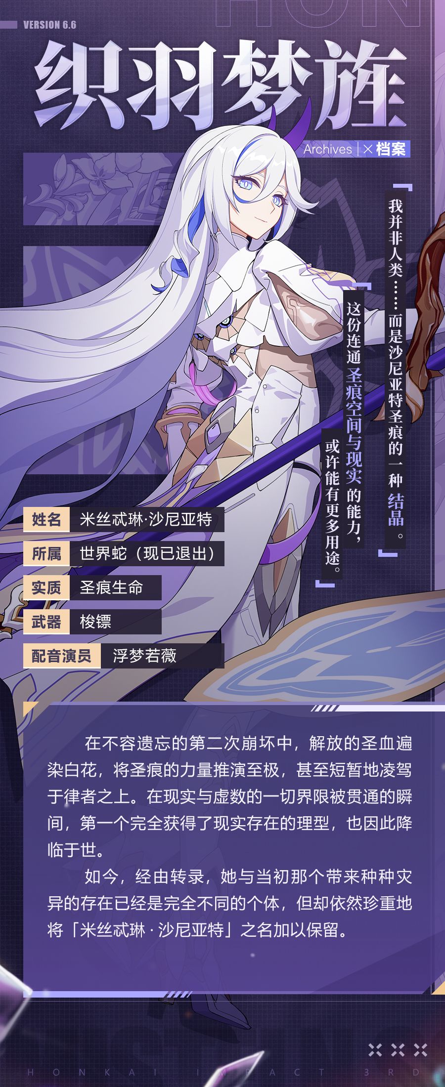 米丝忒琳·沙尼亚特全新S级角色「织羽梦旌」即将在6.6版本登场!