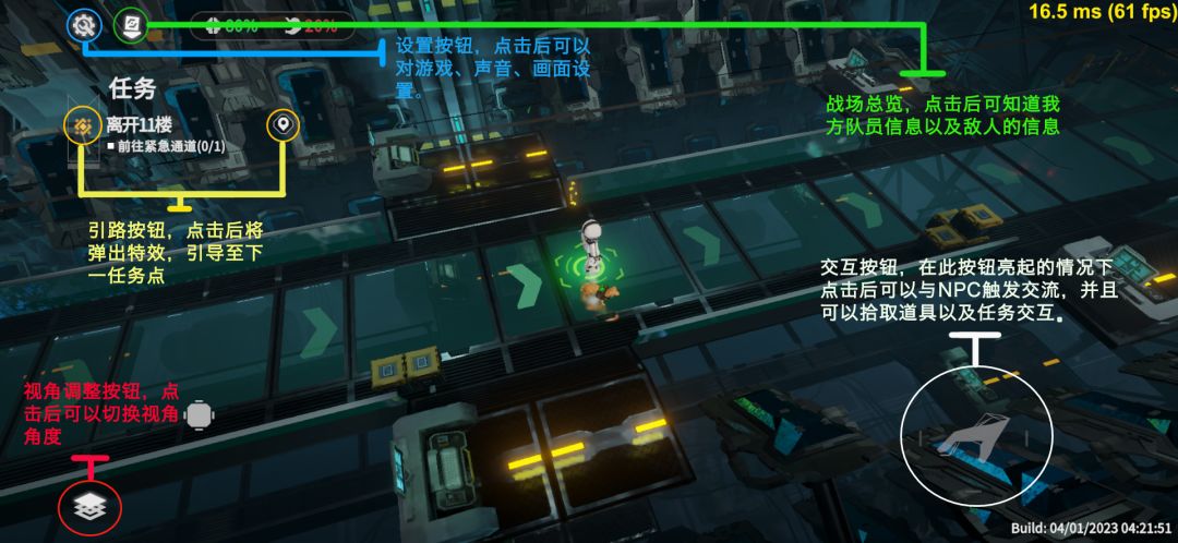 ▷ 白圈内按钮:交互——玩家在此按钮亮起的情况下可与npc触发交流,并且可以拾取道具、进行任务交互