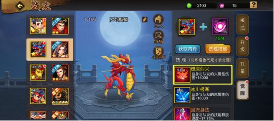鉴于此,在选择玩家应该侧重选择主攻技能,例如技能一伤害提升一定的数值、对应属性伤害提升一定的数值等,可供自选的技能与属性攻击加成。这里建议麒麟普通技能的等级最少也要洗练达到8级琥珀色以上,如果能提升到9级金色(大概需要400-500内丹)技能那就意味着此次洗练已经很成功了。