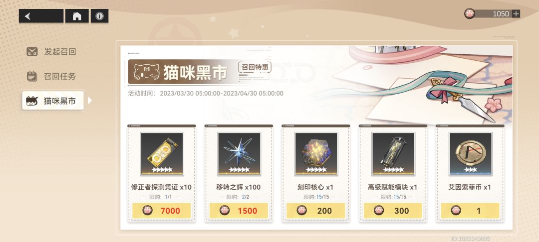 每天登录200个,活动3月30号开始,4月30号结束。32天,乘200等于6400,加上每周额外300,4周1200。全部拿满也就是7600,足够换十连了。