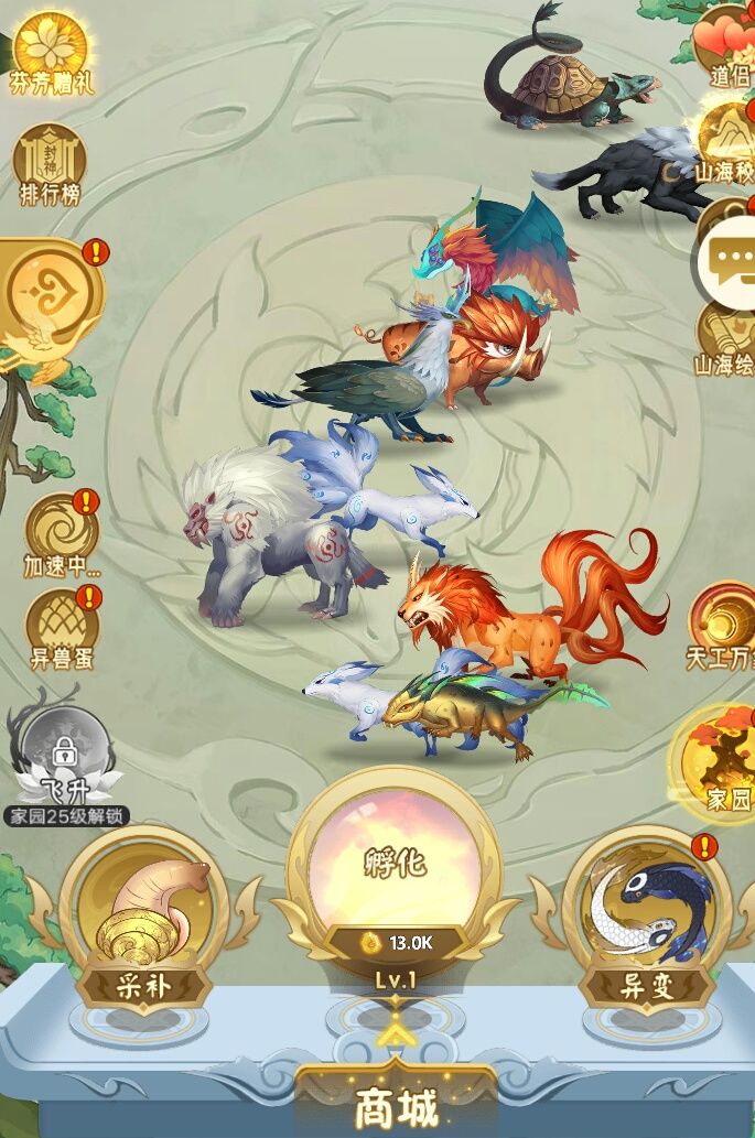 这是一个养神兽的游戏,里面的神兽是逐步升级的由简单到复习,可以赚到金币。