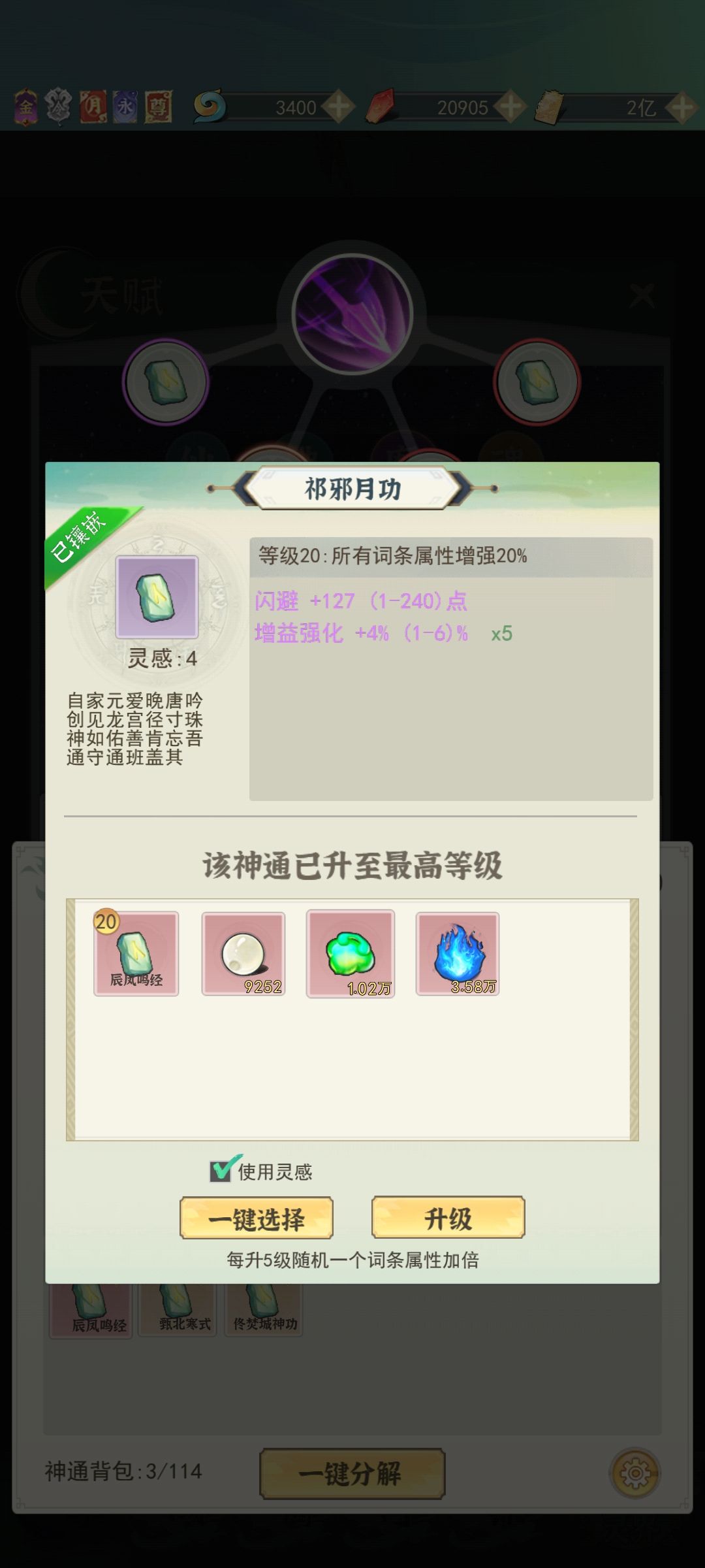 升到灵界之后无字残页可以灵石购买了把之前缺的部分补齐,另外新开了自创神通功能战力主要在这里。