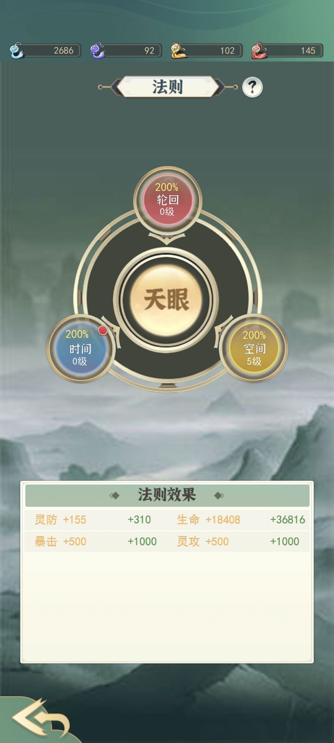 法身点完就是法则了 法则只点空间拿灵防,材料在坠星海得。有钱一样可以礼包买,目前感觉性价比不高战力提升有限。
