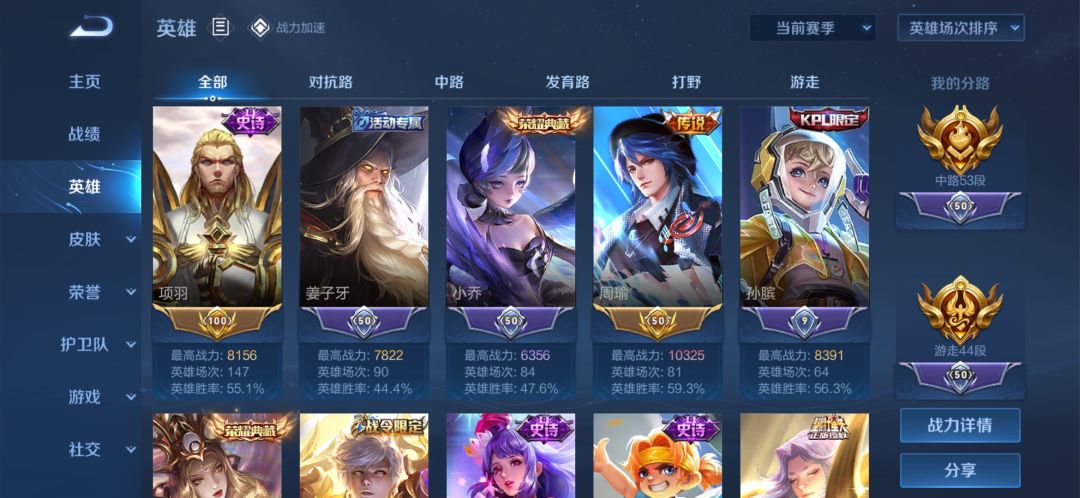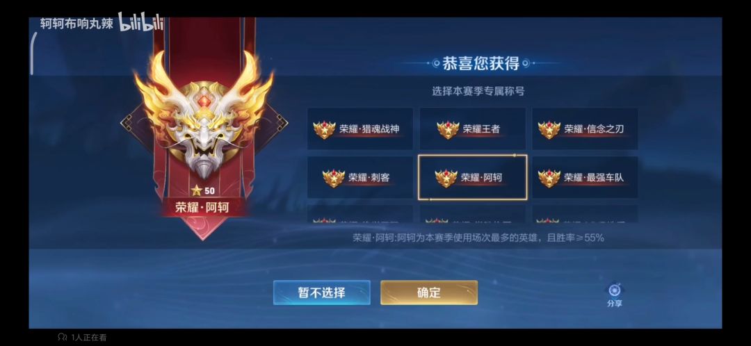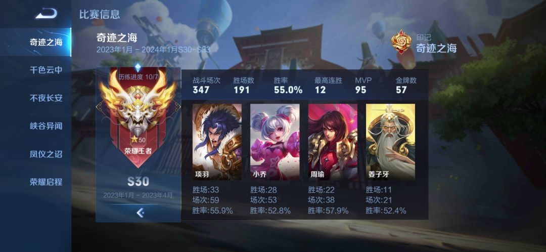 阿珂是别人的图,但是我项羽本赛季胜率>55%了,场次也是最多的,为啥我没有荣耀.项羽跟荣耀.西楚霸王的选项?