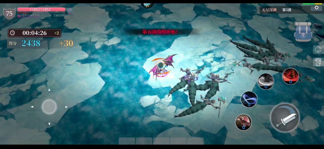3、等你觉得旋风和利刃出血秒不掉小怪时和扛不住怪物攻击时就可以利用横扫的大范围高伤害清理了,安全又快速。