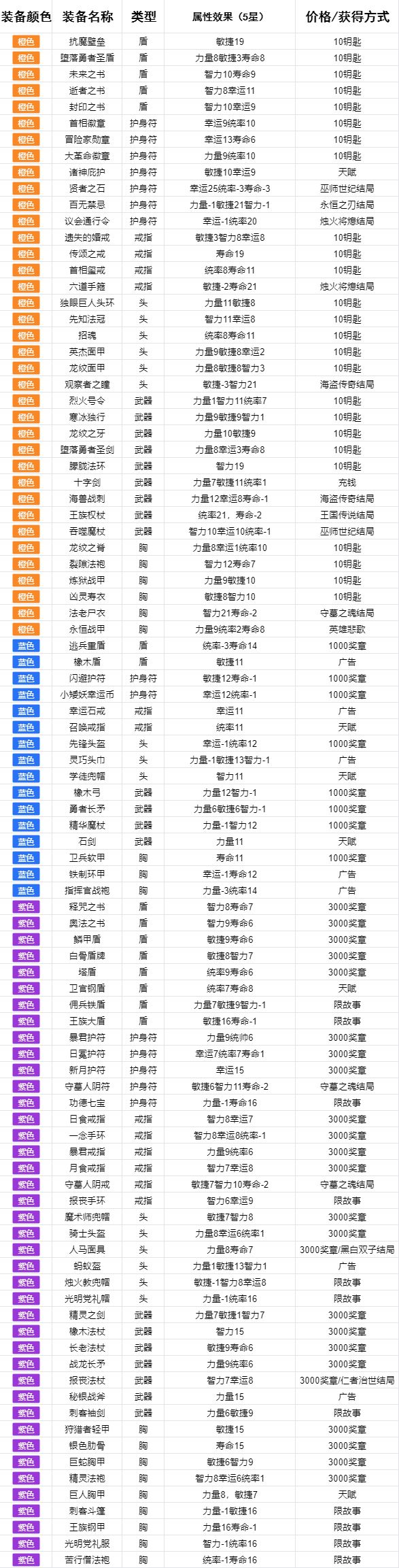 本帖数据以5星装备数据为准,方便玩家对比每天商店的装备优劣,有些橙装是可以刷的,能直接刷满5星就注意别买了浪费钥匙。未实装的4个故事包所含紫装还没数据。
