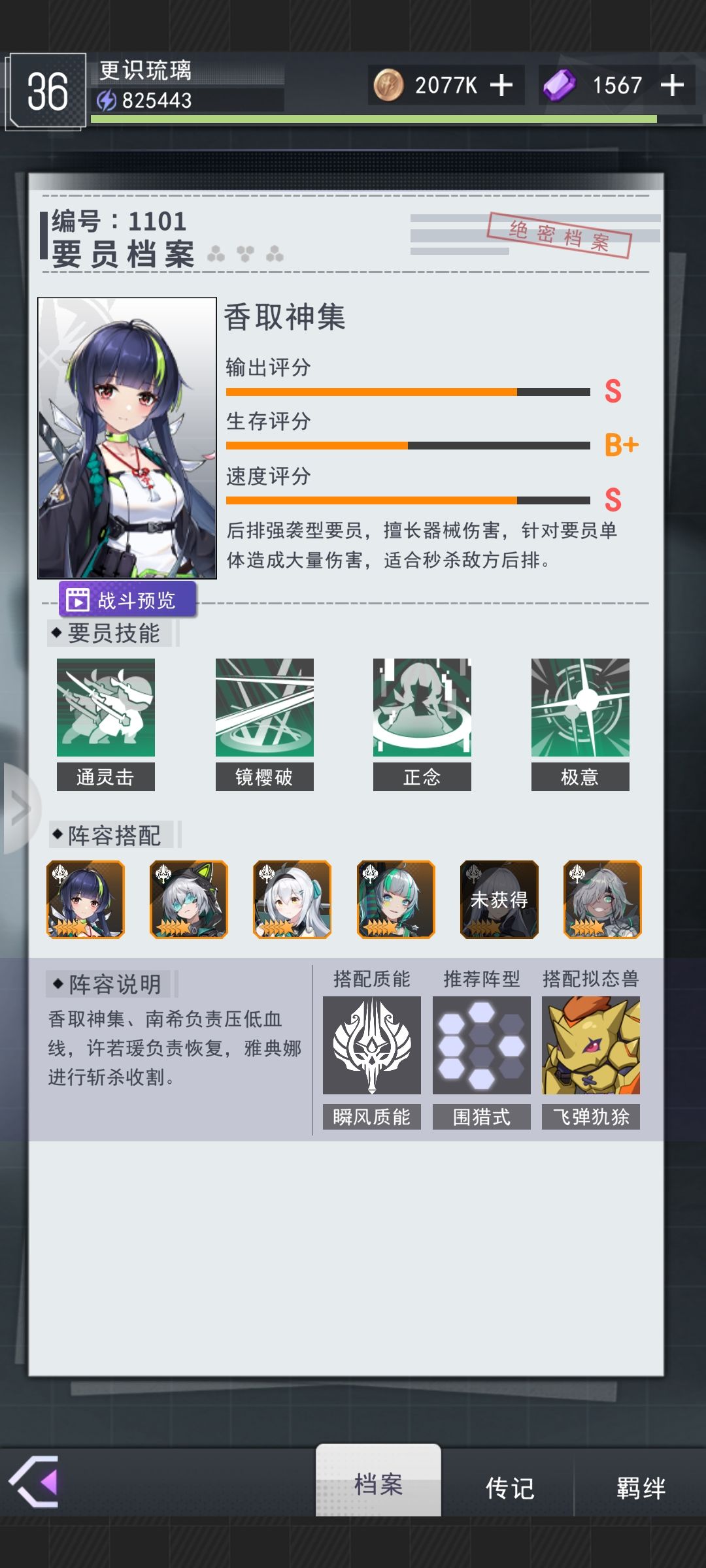 这个角色挺有意思可以通过测试庆典的剧场以及剧院通过活动获得,单体角色,爆发很高,切后排辅助,只不过阵容没凑齐,星级也低也没法上场。