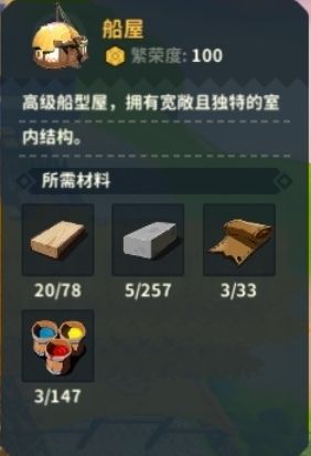 b.照例上2个茅草屋+2个船屋。这部分建完可以再多320点繁荣。