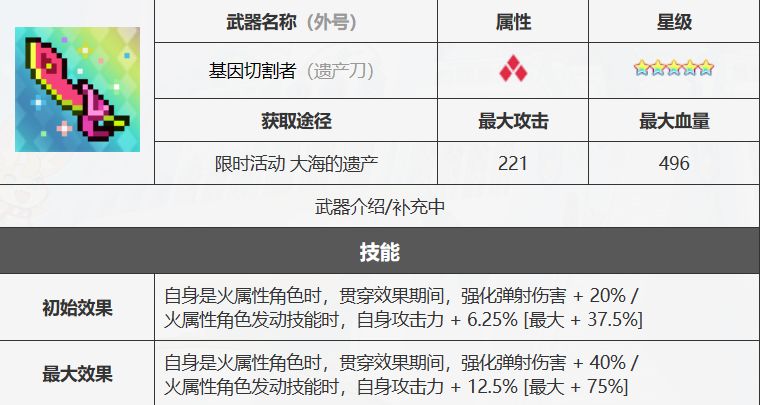 适合长线作战的火技伤武器,但是加成数值并不高的同时需要大量的暖机,加上火技伤根本不缺武器所以基本算是个收藏品