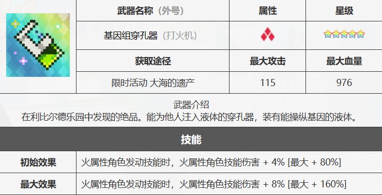 复刻活动的新武器,火PF的暖机类型武器,但是本身数值比较低,火pf刚刚又实装了土俑的哈尼枪,所以也是个收藏品