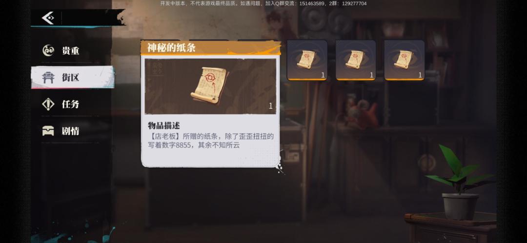 接下来我们回到老板处,老板就会给我们带有密码的纸条密码为8855,开启阴阳眼就能就能打开宝箱了