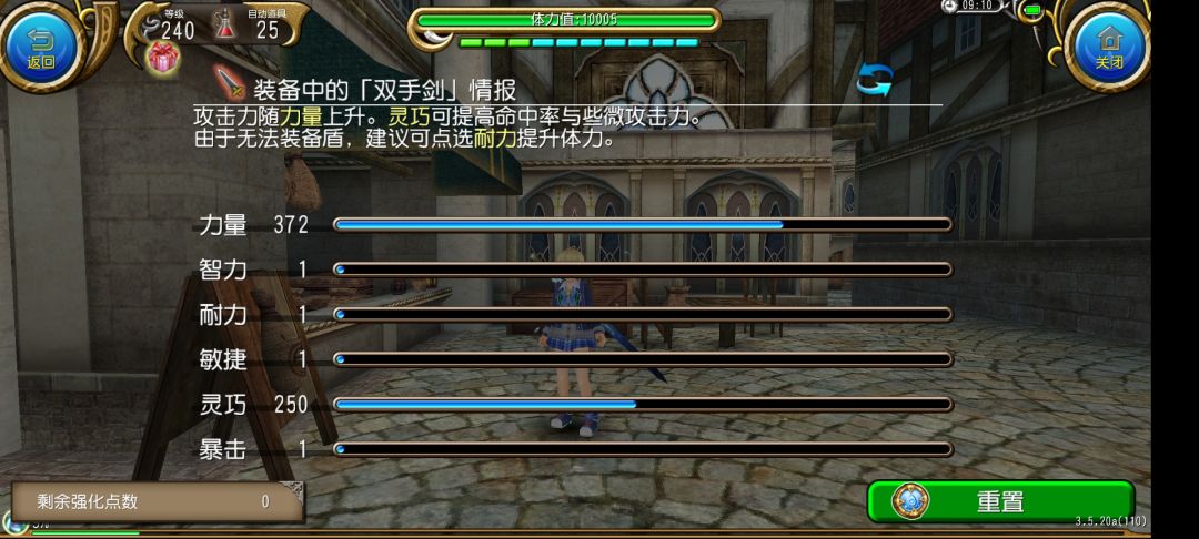 萌新加点先把力量点满250 再把灵巧点到250