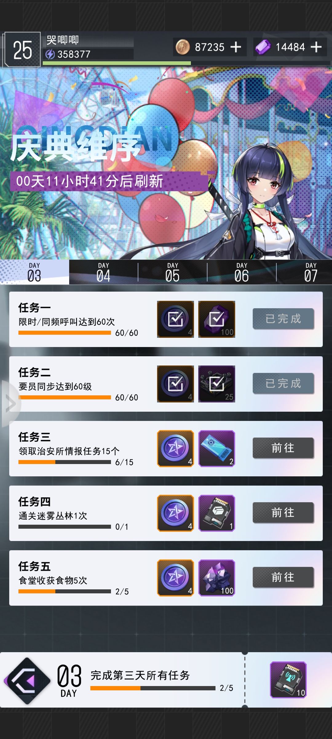 在庆典秩序模块中,共有7天任务。每天有5个任务,完成每天任务和每个任务均有奖励,任务可以一块儿做。点击前往可以快速到达任务主线。