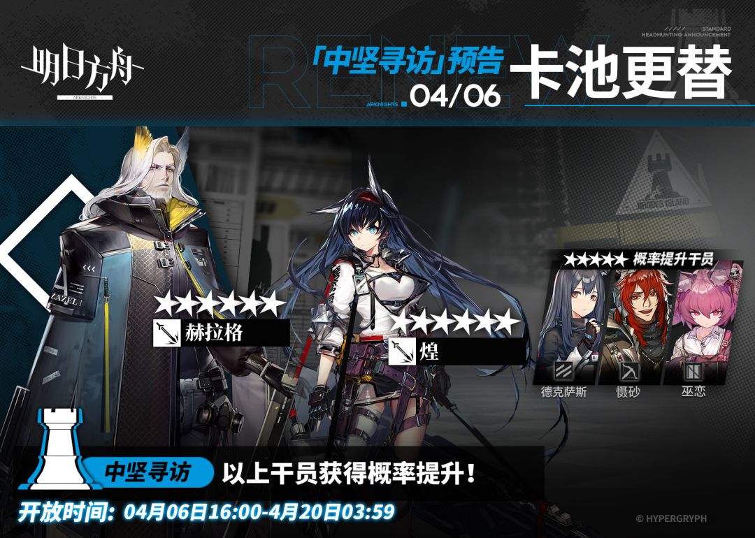 寻访说明:该寻访中以下干员获得概率提升;
