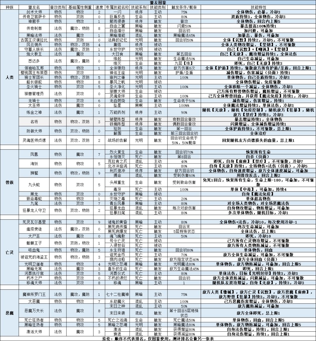 已开始更新测评和推荐阵容,但是一个人搞比较慢,欢迎大家提供思路,尤其是阵容搭配。