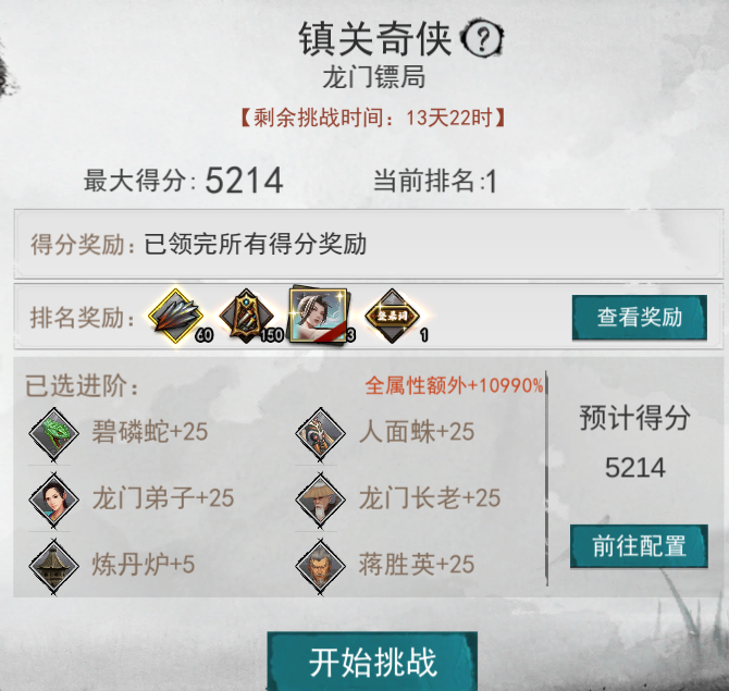 本期镇关有多恶心凌晨打的小伙伴估计已经开骂了,不错,炼丹炉无限嘲讽(051打条和苏的治疗一样被嘲讽),然后龙门棍开始击退我方进度条,棍棍到肉,杨开和王大奶一样顶不住只能靠玉玺支撑,最后一般都在第三回合团灭。我试了几次实在对这个炼丹炉嘲讽无语,最后直接选择在第三回合其他人待命先让大顾把炼丹炉解决了之后再进行常规打法,虽然这样回合数会变多,也是没办法的事情。。我的5214满分阵容是王大奶,大顾,051,苏明玉和莫邪子。