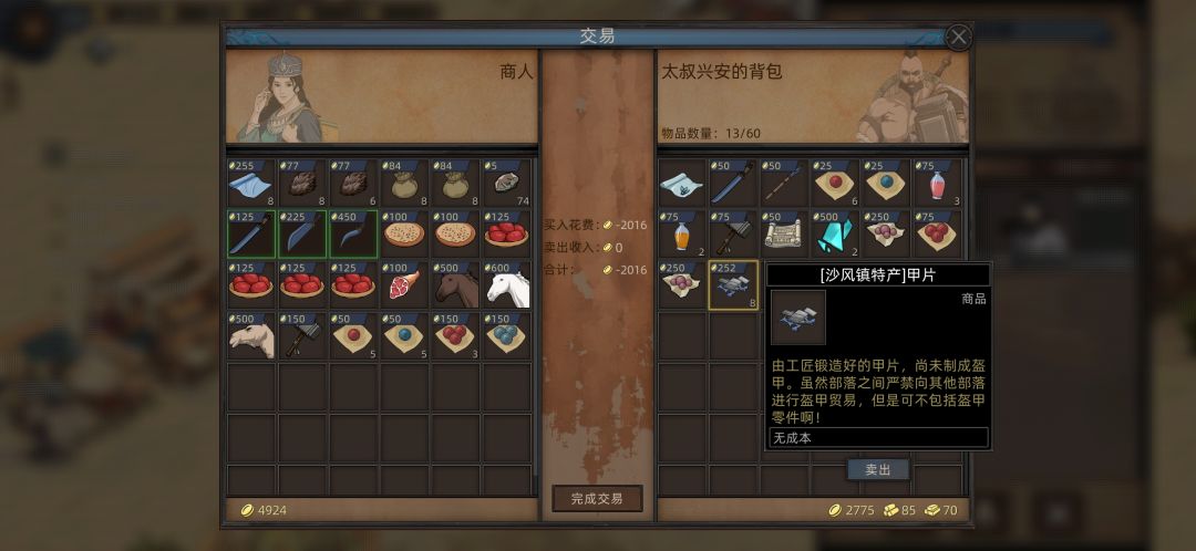 前往沙风镇买甲片(进城看一下,别买了,亏本)