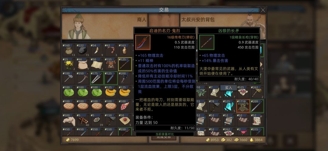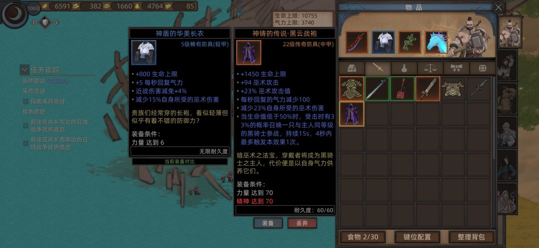 两个护甲,左面的搭配远古三叉戟,右面的强化——神盾,搭配名刃鬼烈(流血对自己就不咋疼了)