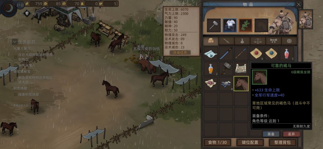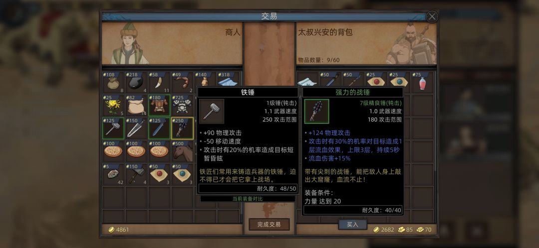 1 铁匠:维修装备(前期缺资源,去城里耗不起)强化装备(和黑火祭坛一样,但是不需要给玉石)装备精炼(获得一个随机词条选择的装备,1=1+“1”)(马也可以精炼,一人一匹霹雳