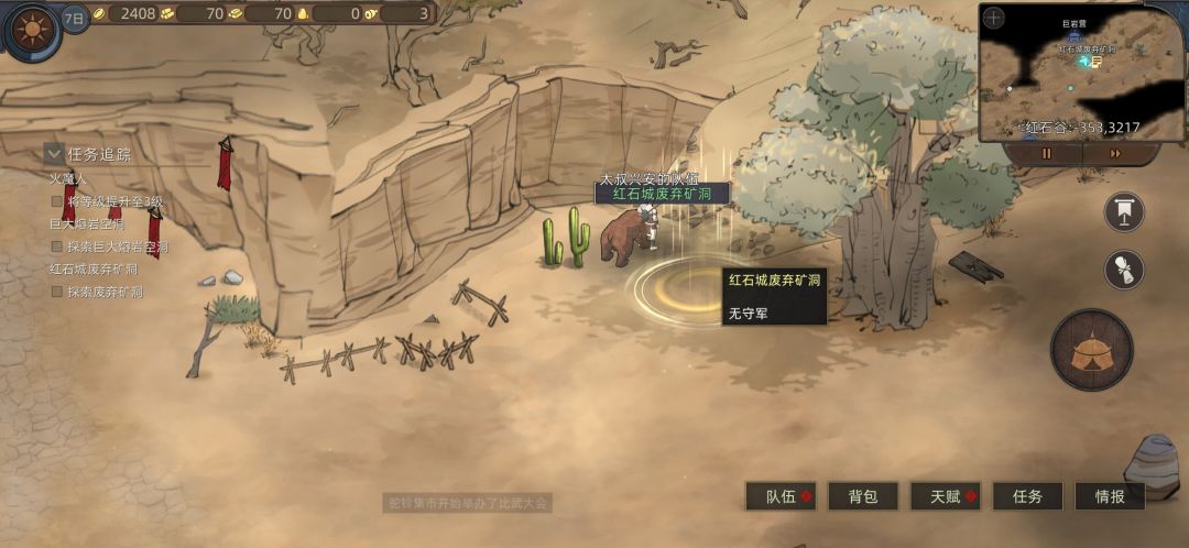 红石城左右两个任务,进入红石城,进下酒馆(有人之后可以在情报里看所在位置)