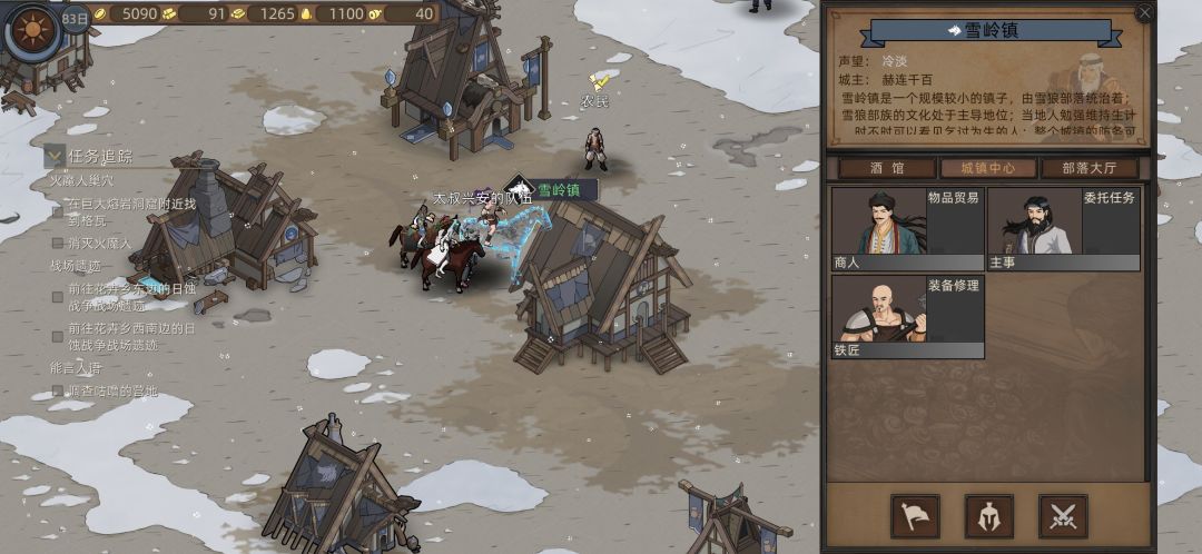 途径雪岭镇,进入城中,进入酒馆(曲玉刚巧在,但是没法招,对下话,方便后面追踪),接俩任务继续前行