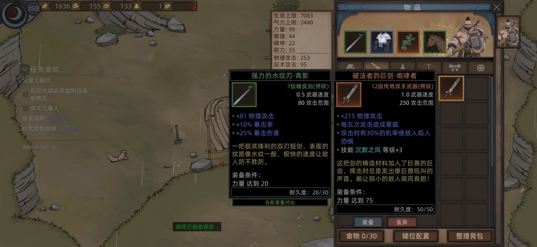 补:(这里也可以刷青影剑+青影甲,刷完两件后,兽骨洞窟可以不打,毕竟不太好打,可以先存个档,后面能过巨大熔岩空洞就行)